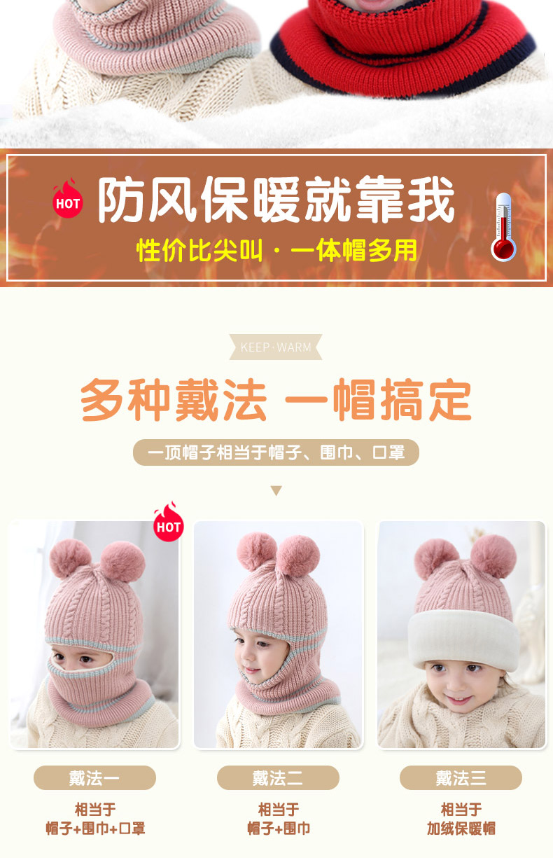 Children's demi-season hat, windproof woolen scarf, warm mask for men and women