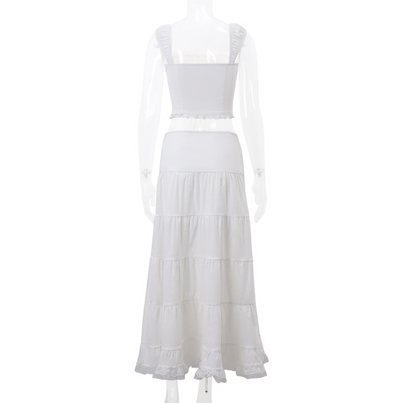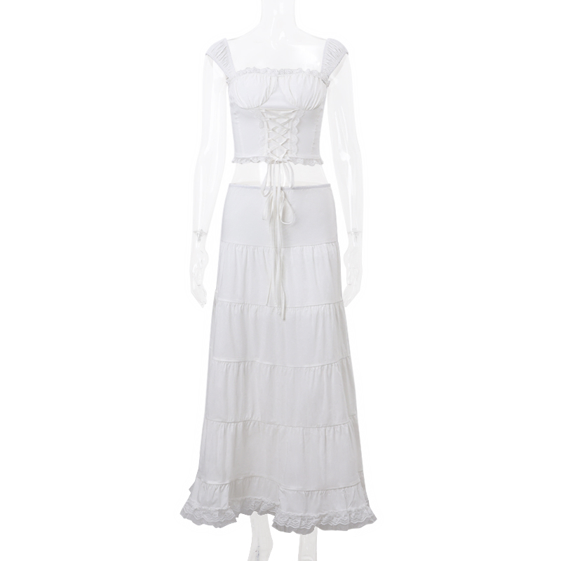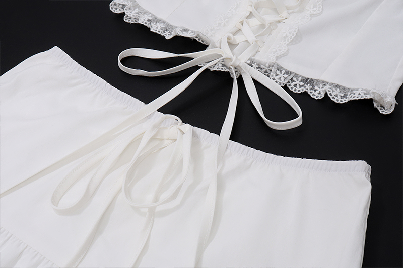 Belt, lace top with cups, white skirt, spring set, french style