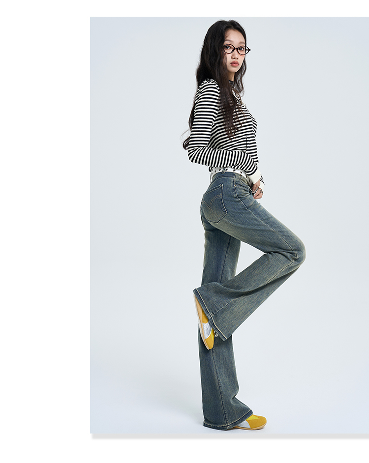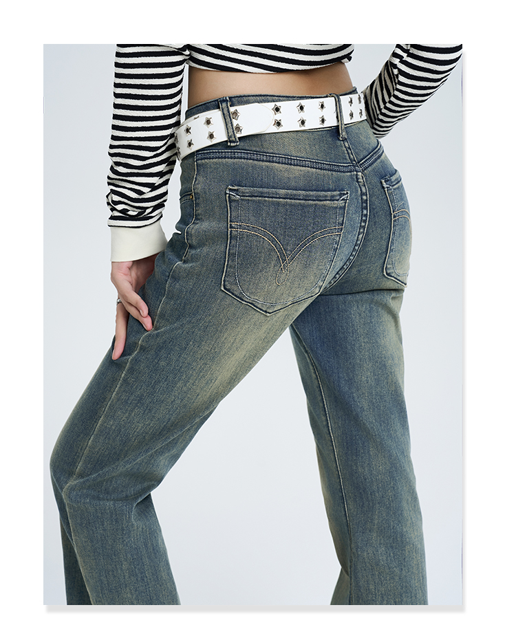 Jeans, trousers, autumn megaphone, for teenagers, loose straight fit